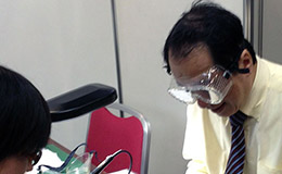 左:体温ハート「離れた恋人同士で声以外の何かを伝えたい」そんな感じのアイテムです、お互いの体温と鼓動を伝え合うことができます。(ブースのお姉さんとやってみたのですが、何故か上手く動いてくれませんでした)